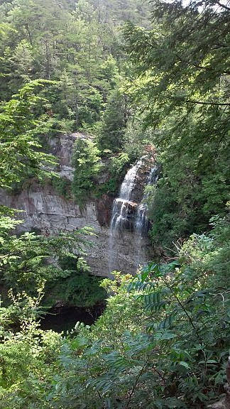 The pride of this part of Tennessee, and the reason we came, was definitely the Fall Creek Falls State Park. This park is a nature lover’s dream from the moment you drive up. Driving through you see deer frolicking under the trees and these winding roads take you over rushing mountain water. What makes this place special are the many sparkling, majestic waterfalls waiting for you to step away from the busy world to come and play all day. Fall Creek Falls is not only the main attraction here, but is also the tallest waterfall in the Eastern U.S. There is a reason this is the main attraction. This 256 foot tall waterfall is impressive to say the least and in the most picturesque setting imaginable. After a mile hike to the viewing area, followed by a difficult hike down rocks the entire next half mile or more to the bottom of the falls, it is the small price you have to pay to view this beauty. When you finally reach the bottom and round the last corner to view the falls it feels like stepping into a movie scene. Time seems to slow down once you reach this escape from it all. From below the falls, you have a crescent shaped 250 foot rock cliff towering over you, large boulders beneath, birds flying above, a cool continuous breeze and the gentle falls flowing into an emerald pool. Although, you do lose something by visiting a place like this—all your worries in the world.