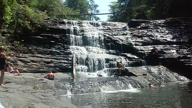 However, this wasn’t the only amazing place in this park. There was also Cane Creek Cascade Falls. This little piece of paradise was better than any resort style swimming pool you could imagine. A much smaller, wider waterfall trickling down the side of a mountain into a huge swimming area. Kids, and every kid at heart (including Tom and I), sliding into the water off the rocks of the waterfall or jumping from the ledge into the deep pool beneath. I’m not sure why anyone would ever visit the “real” pool, which they do have on site and it was empty by the way, for good reason. Although, catch this same waterfall after a big downpour of rain and you are in for a very different scene, which we also witnessed. One of white water terror, not ideal for swimming. These are the types of places that make our journey memorable. In these last three weeks every place so far has had something unique to offer us.